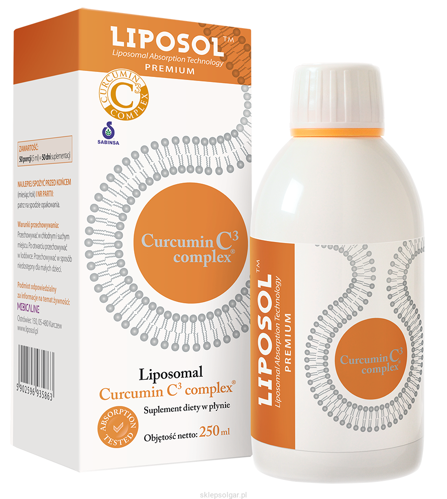Liposol Curcumin 3 PLUS250 ml została zamknięta w liposomach. Liposomy są małymi cząsteczkami (kuleczkami) lipidowymi, które powstają naturalnie w momencie kontaktu wody z lecytyną, składnikiem soi niemodyfikowanej genetycznie. Liposomy są łatwo wchłaniane przez organizm. Gdy kurkumina rozpuszcza się w wodzie i miesza z lecytyną zachodzi proces enkapsulacji liposomalnej. Rezultatem jest lepsze wchłanianie kurkuminy we krwi i bezpośrednio do ścian komórkowych.