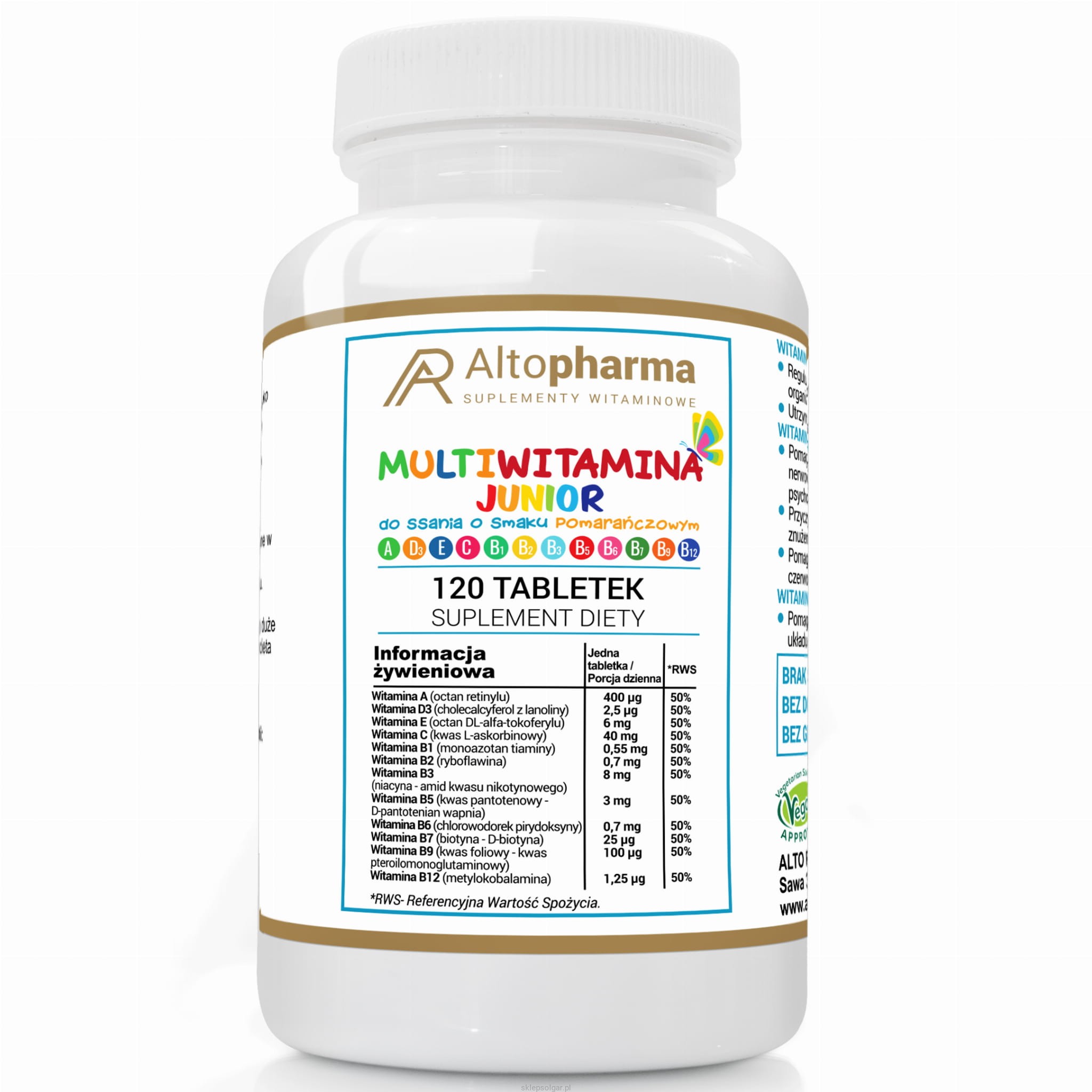 Alto pharma Multiwitamina JUNIOR DLA DZIECI DO SSANIA 120 tabletek