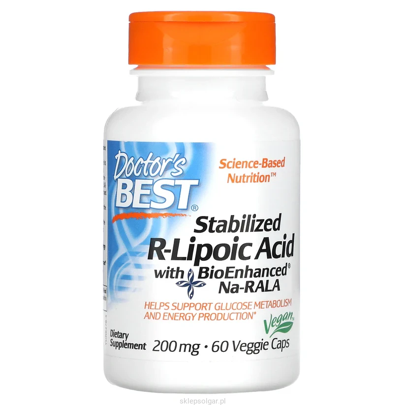 Doctor's Best Stabilized R-Lipoic Acid zawiera BioEnhanced® Na-RALA, sól sodową kwasu R-liponowego (RLA). BioEnhanced® Na-RALA jest naturalną i stabilizowaną formą RLA, która nie ulega degradacji w wysokich temperaturach i jest bardziej biodostępna i biologicznie aktywna. Kwas liponowy (LA) odgrywa ważną rolę w metabolizmie glukozy i produkcji energii. LA jest rozpuszczalny zarówno w tłuszczach, jak i w wodzie. Badania sugerują, że LA może wspierać obronę antyoksydacyjną organizmu. D-biotyna jest integralną częścią aktywności enzymów niezbędnych do rozkładu i przekształcania kwasów tłuszczowych i węglowodanów w energię.