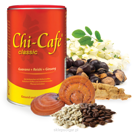 Dodatek wyciągów z japońskiego grzybka reshi, żeńszenia i guarany nadają Chi-Cafe szczególny smak oraz aromat oraz sprzyjają witalności.