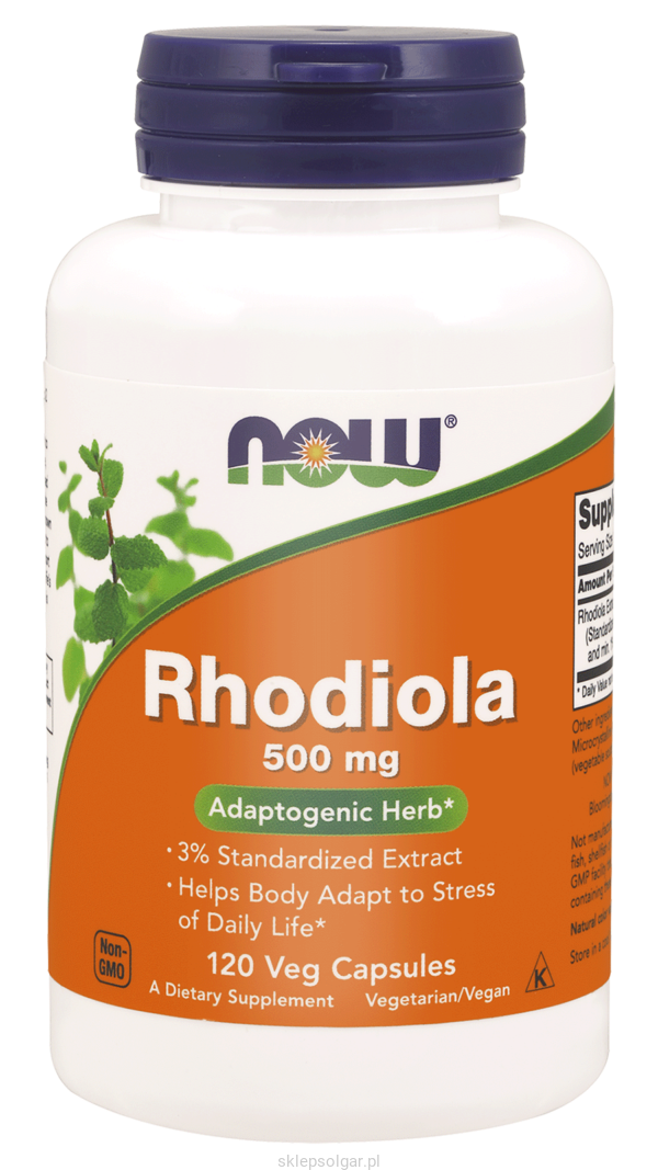 NOW® Rhodiola zawiera standaryzowany ekstrakt korzenia różeńca górskiego (Rhodiola rosea, Sedum roseum). Różeniec jest rośliną lokalną regionów arktycznych i alpejskich terenów Europy, Azji i Ameryki. Różeniec przyczynia się do zachowania prawidłowego krążenia związanego z wydolnością pracy umysłowej, zdolnością reagowania i optymalną aktywnością poznawczą. Wspiera kondycję i wydolność w sportach wytrzymałościowych. Stanowi ochronę podczas fizycznego stresu. Pomaga w adaptacji organizmu do stresu emocjonalnego i wysiłku fizycznego. Pobudza system nerwowy, korzystnie wpływa w zmęczeniu, bólu głowy wywołanym przez stres, zaburzeniach snu, braku apetytu. Pobudza percepcję, utrzymuje aktywność umysłu i wydajność pracy. Chroni przed stresem i nadciśnieniem co korzystnie wpływa na układ sercowo-naczyniowy.