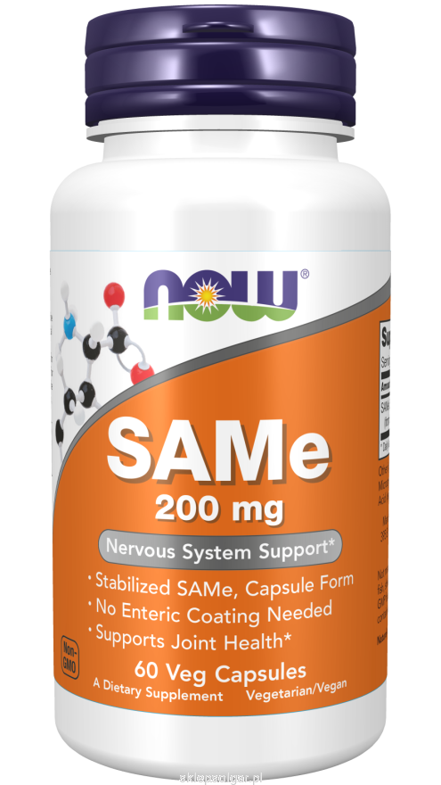 SAMe (S-adenozylometionina), związek natywny dla organizmu, jest składnikiem wielu reakcji biochemicznych, w tym tych, które wpływają na biochemię mózgu i zdrowie stawów.* SAMe ma kluczowe znaczenie dla syntezy neuroprzekaźników, jest ważny dla produkcji energii w mózgu, przyczynia się do utrzymania zdrowej funkcji błony komórkowej i wpływa na metabolizm chrząstki *.