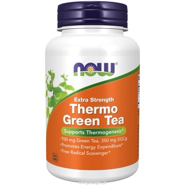 NOW® Extra Strength Thermo Green Tea™ oferuje wygodny sposób na uzyskanie aktywnych składników zielonej herbaty w skoncentrowanej formie. Dzięki zawartości 350 mg EGCg (galusanu epigalokatechiny), ten potężny ekstrakt z zielonej herbaty łączy w sobie naturalną zdolność zielonej herbaty do tłumienia wolnych rodników z jej zdolnością do wspomagania termogenezy komórkowej i promowania prawidłowego wykorzystania tłuszczu.* Extra Strength Thermo Green Tea™ stanowi zatem zdrowy sposób na pomoc w osiągnięciu optymalnego wydatku energetycznego w ramach zrównoważonej diety i programu ćwiczeń.