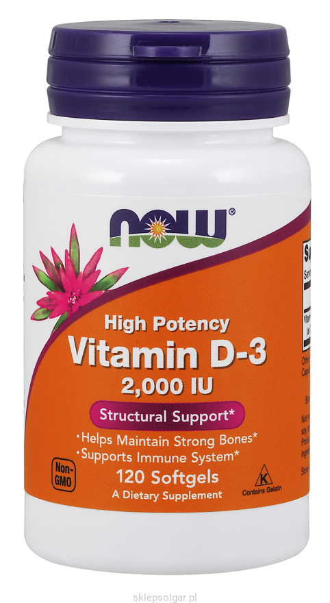 Kapsułki Vitamin D marki NOW® dostarczają tę witaminę o kluczowym znaczeniu w wysoce przyswajalnej, płynnej postaci. Witamina D pomaga w utrzymaniu zdrowych kości i zębów oraz prawidłowego poziomu wapnia we krwi. Wspomaga prawidłowe funkcjonowanie mięśni i układu odpornościowego. Organizm normalnie uzyskuje witaminę D z pożywienia lub produkuje (synteza) ją w skórze pod wpływem ultrafioletu zawartego w promieniowaniu słonecznym. W okresie letnim synteza ta jest jednak ograniczona ze względu na stosowanie kosmetyków z filtrami UV i zalecane osobom starszym oraz kobietom w ciąży unikanie nadmiernej ekspozycji na słońce. W okresie jesienno-zimowym synteza jest ograniczona z powodu zmniejszonego nasłonecznienia. U osób po 65 roku życia obserwuje się ponadto zmniejszenie syntezy skórnej witaminy D.