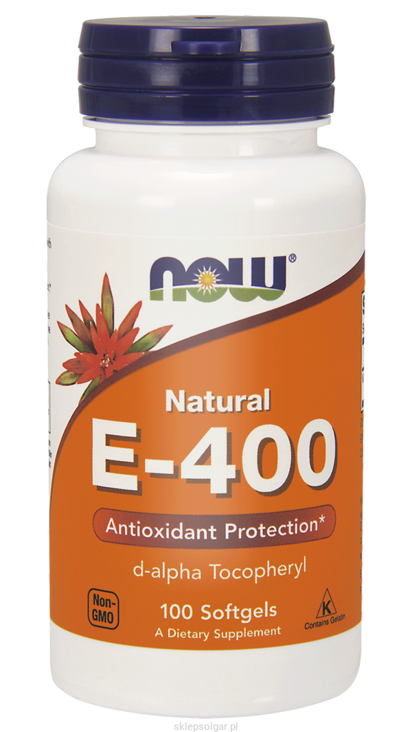 E-400 Natural marki NOW® zawiera naturalną witaminę E – ważny przeciwutleniacz i pierwszą linię obrony przeciwko peroksydacji lipidów. Ma szczególnie istotne znaczenie dla ochrony komórek organizmu przeciw uszkodzeniom spowodowanym przez wolne rodniki (oksydacyjnym).