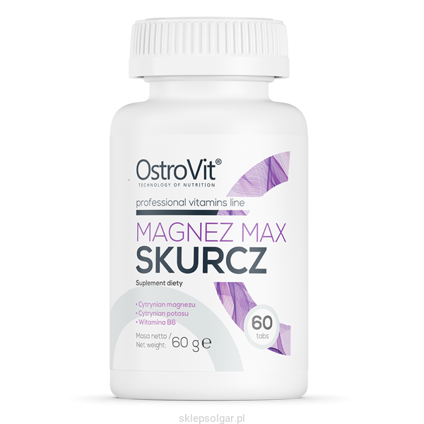 OstroVit Magnez Max Skurcz to unikatowy kompleks witaminowo-minerałowy składający się z wysoce biodostępnych form związków magnezu, potasu oraz witaminy B6. Uzupełnianie niedoborów ww. minerałów jest szczególnie ważne w przypadku osób uprawiających sport, prowadzących aktywny tryb życia, ale również dla osób ceniących sobie dobre samopoczucie oraz dbających o homeostazę swojego organizmu.