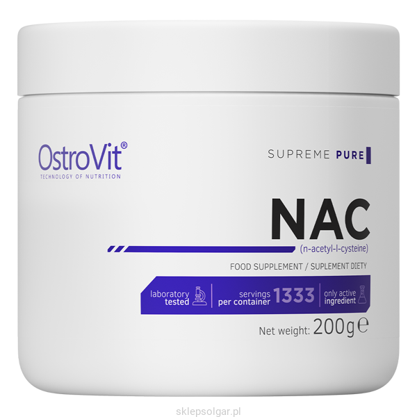 OstroVit NAC to suplement diety w formie proszku, który zawiera wyłącznie czystą N-acetylo-L-cysteinę, będącą pochodną L-cysteiny, czyli aminokwasu siarkowego. Związek ten znany jest ze swoich silnych właściwości antyoksydacyjnych. NAC jest bardzo wartościowym źródłem L-cysteiny, która potrzebna jest do syntezy glutationu pełniącego w organizmie funkcję bardzo silnego antyoksydantu odpowiedzialnego za wsparcie działania wątroby. Poszukujesz suplementu diety, który pozwoli Ci oczyścić organizm z toksyn, zapewni ochronę wątroby oraz pomoc w walce z infekcjami? Postaw na suplement diety OstroVit NAC.