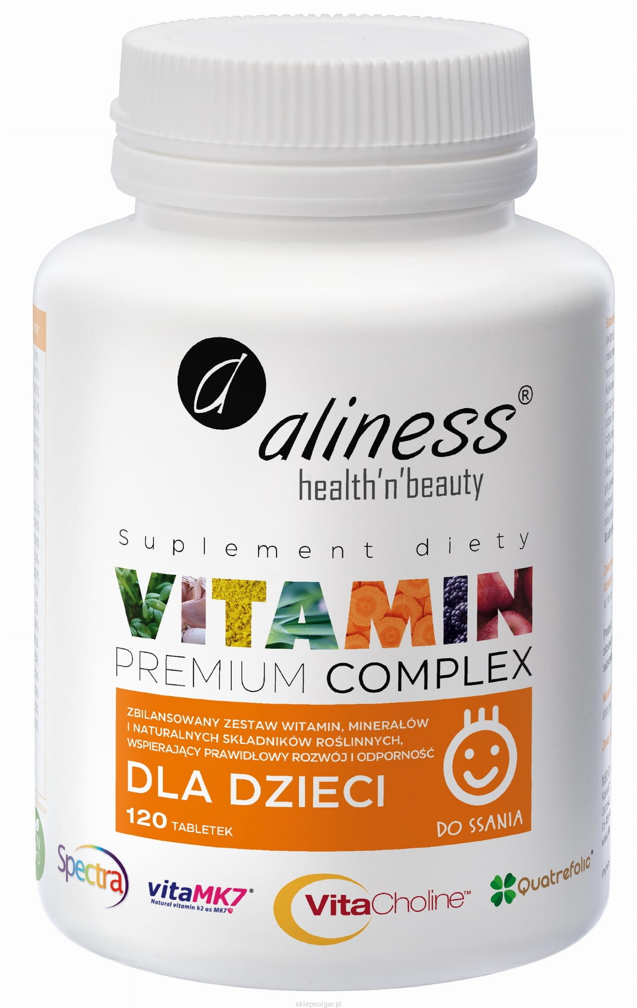 Premium Vitamin Complex DLA DZIECI to zbilansowana kompozycja witamin, minerałów oraz składników roślinnych, stworzona z myślą o dzieciach. Niewielkie rozmiary tabletek sprawiają, że preparat jest łatwy do połknięcia, a dzięki naturalnym dodatkom smakowym, ma delikatny smak i może być podawany również do ssania.