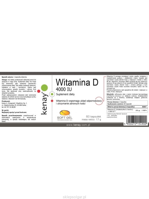 WITAMINA D3 4000 IU (60 kapsułek) - suplement diety